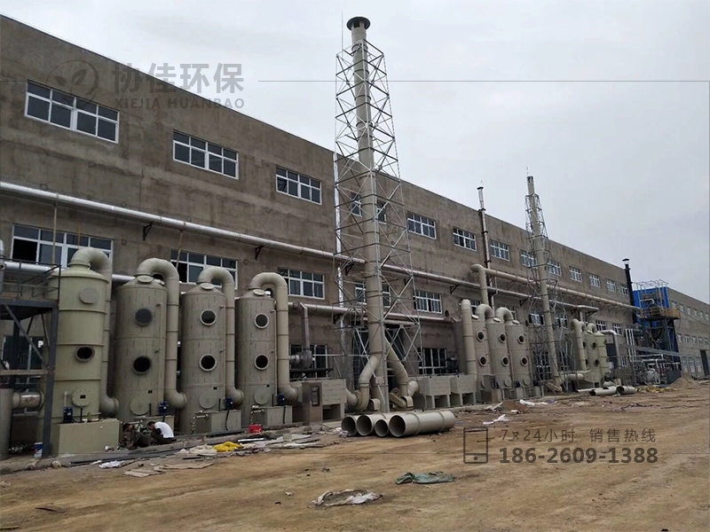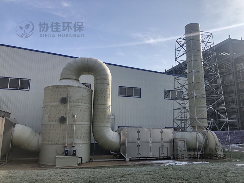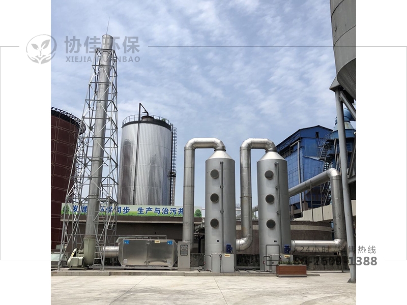 (4)噴淋段——在凈化塔的內(nèi)部安裝的噴淋系統(tǒng),在噴淋管道上安裝了霧化噴嘴,能保證廢氣與循環(huán)液接觸效果。