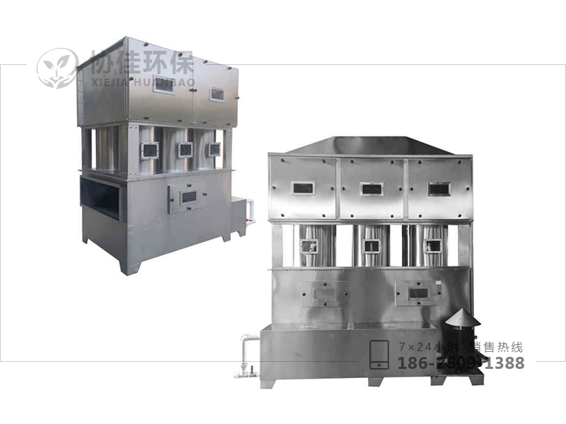 氣旋混動(dòng)噴淋噴淋塔,是處理有害廢氣的主要設(shè)備。工作時(shí),有害廢氣由塔底切向進(jìn)塔,在塔板葉片的導(dǎo)向作用下使煙氣旋轉(zhuǎn)上升,并在塔板上將隨板下流的液體噴成霧滴,增大氣液間的接觸面積;液滴被氣流帶動(dòng)旋轉(zhuǎn),產(chǎn)生的離心力強(qiáng)化氣液間的接觸,并被甩到塔壁上,然后沿塔壁流下,通過(guò)溢流裝置到下一層塔板上,再次被氣流霧化而進(jìn)行氣液接觸。所以,即使在同等液氣比的狀態(tài)下,隨著塔內(nèi)塔板數(shù)的增加,其漆霧顆粒效率將不斷提高;同時(shí),液體在與氣體充分接觸后又能有效地利用離心力作用進(jìn)行氣液分離——避免了霧沫夾帶現(xiàn)象,其氣液負(fù)荷比常用塔板大一倍以上。又因塔板上液層薄、開(kāi)孔率大而使壓降較低,達(dá)同樣效果時(shí)的壓降比常用塔板約一半,因此,綜合性能優(yōu)于常用塔板。