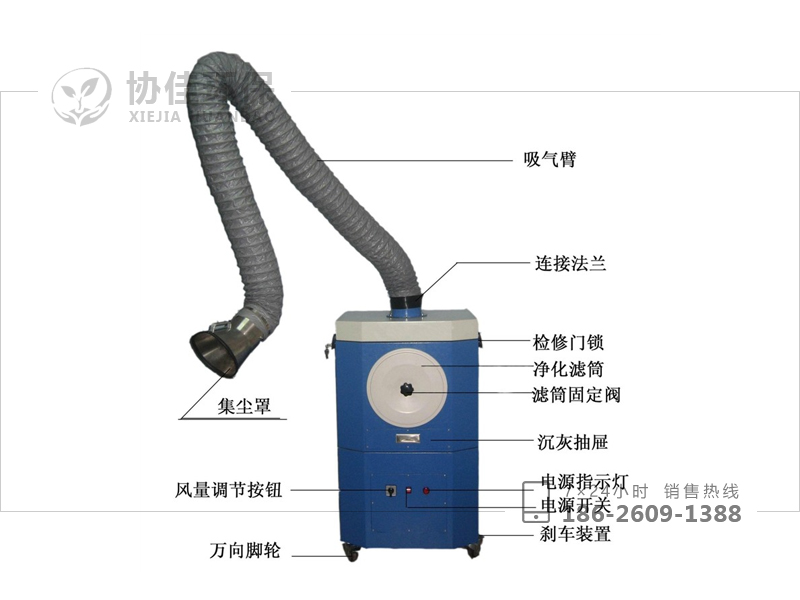 6、配有四個(gè)腳輪,移動(dòng)靈活。這樣能方便設(shè)備任意移動(dòng)確保焊接煙塵點(diǎn)對點(diǎn)凈化。